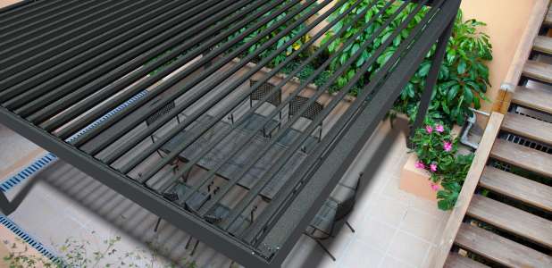 De duurzame aluminium lamellen zijn 125° te roteren en zorgen voor een mooi lichtspel op het terras. Het kantelen van de lamellen gaat zeer eenvoudig middels elektrische bediening of automatisch met een zon- en windsensor.