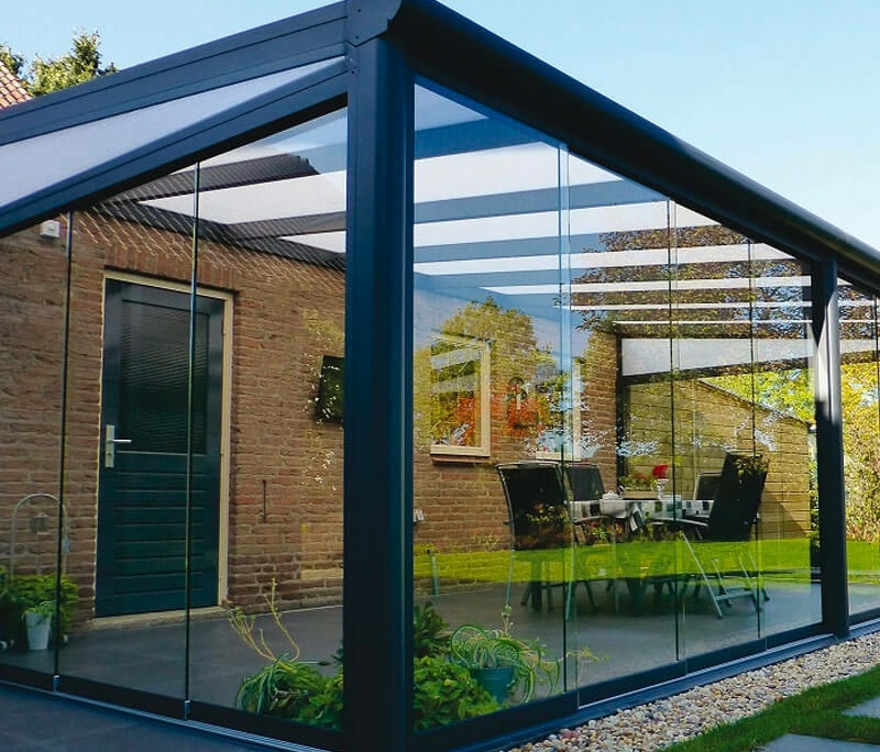 - Glaswanden leverbaar in crème wit (RAL9001) en antraciet (RAL7016Paneelbreedte 82 of 90 of 103 cm.