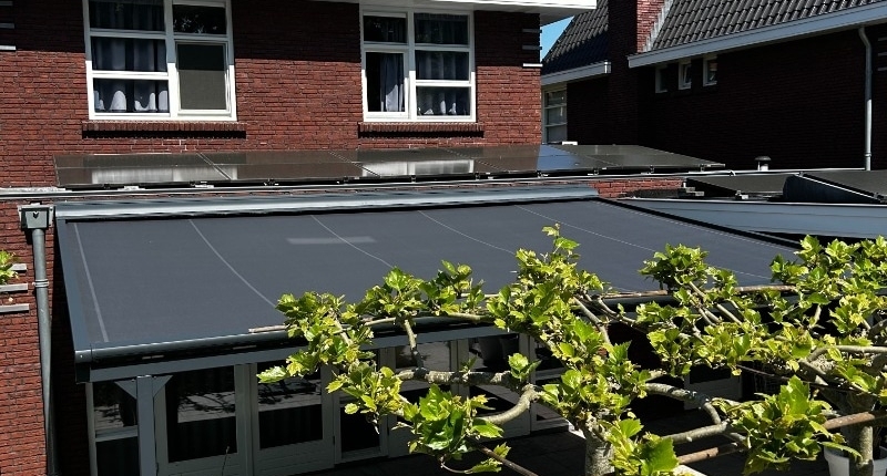 Dat is een vraag die regelmatig voorbijkomt, en het antwoord zegt veel over hoe doordacht dit systeem is. Wanneer de wind afneemt, blijft het zonnescherm ingesloten. Het rolt dus bewust niet automatisch opnieuw uit.